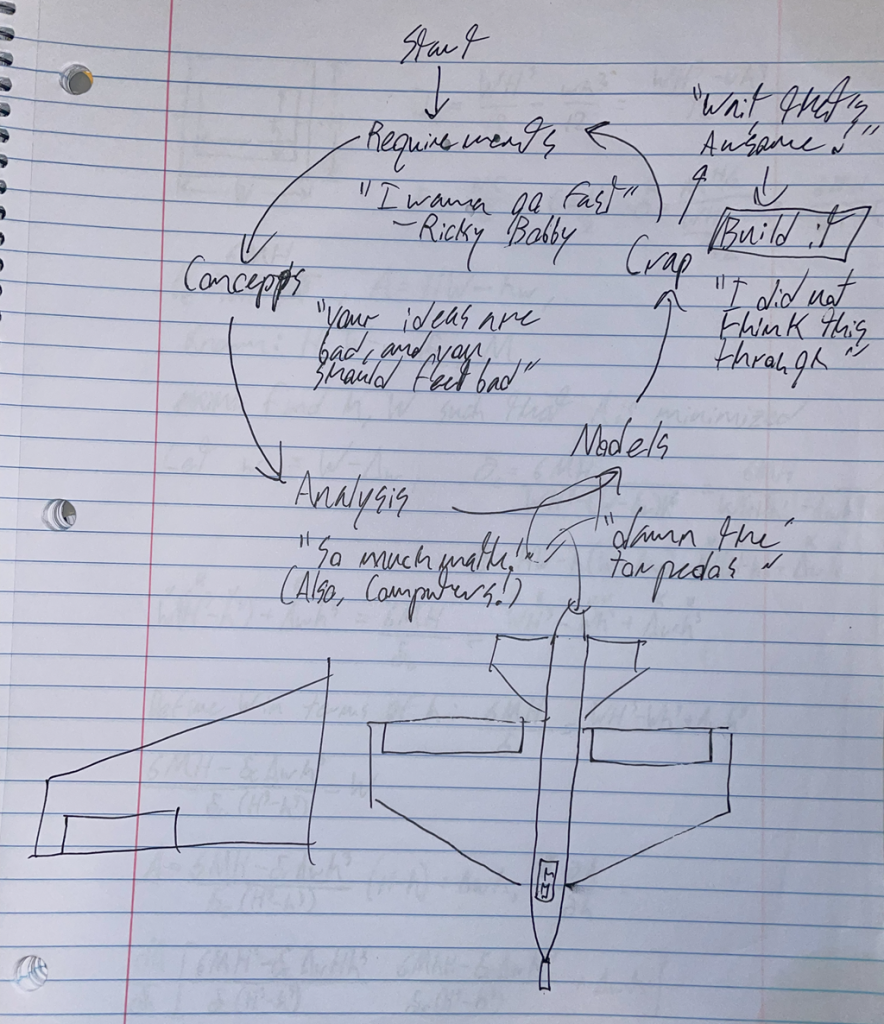 Specifically, the premature optimization that is the root of all evil.  And with that, my sketches of pneumatic ejection seats, dorsal speedbrakes , Meredith-effect-heated-cowl flaps and Peltier-effect-cooled-induction were retired for a second attempt at the airplane design I actually wanted.