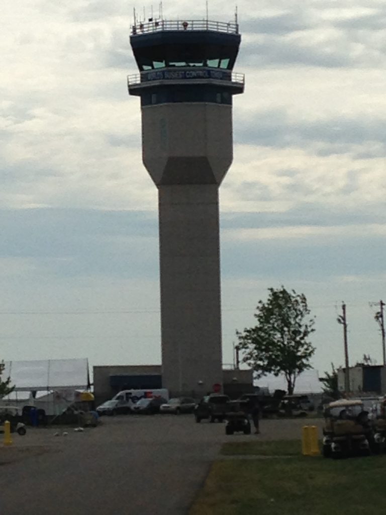Control into Oshkosh is chaotic, but it’s highly organized chaos. Participating as an FAA controller is a competitive honor to be vied for, and hundreds of the FAA’s finest (clad in bright pink shirts for easy identification) conduct a symphony in the sky. Communications are one-way: controllers talk and aviators listen; to do otherwise would congest the 15+ radio frequencies to the point of non-usability. Aircraft are funneled into one of Oshkosh’s five paved runways, two unpaved runways, many helipads, and seaplane lanes – in some years, an airship mooring makes the scene. Landings are done concurrently. Colored dots, painted every 1000’ along the runways, allow for simultaneous touchdown of up to three airplanes in a prom-conga-line that moves in three dimensions and at 90+ miles per hour.